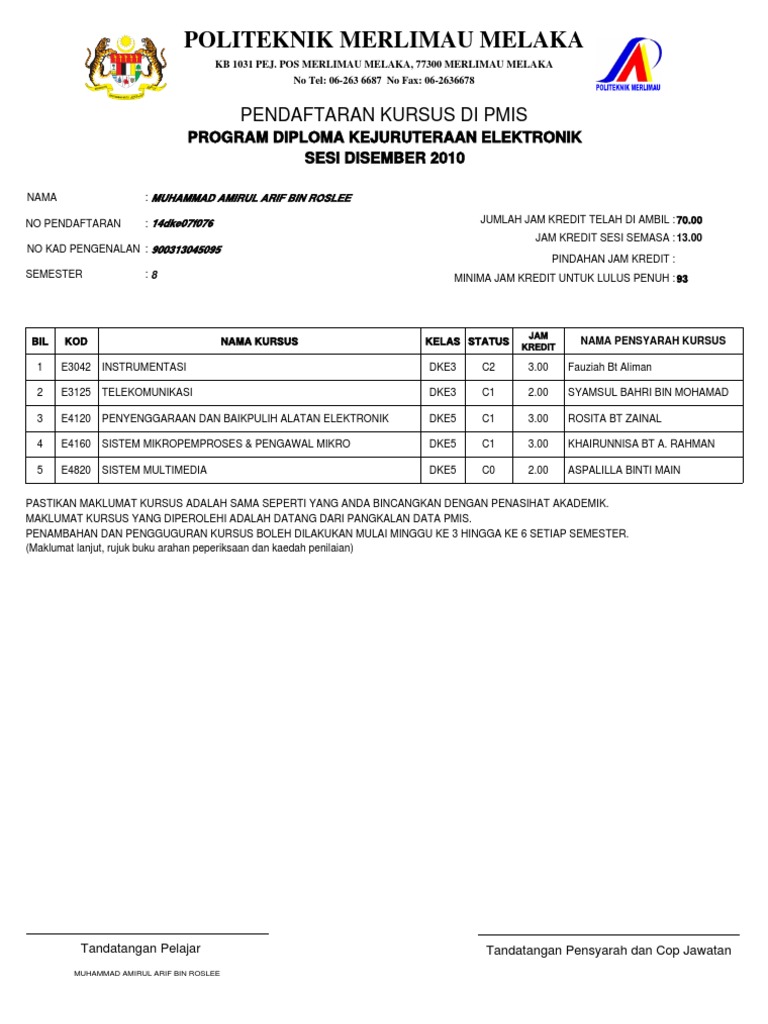 Politeknik Merlimau Melaka Pendaftaran Kursus Di Pmis
