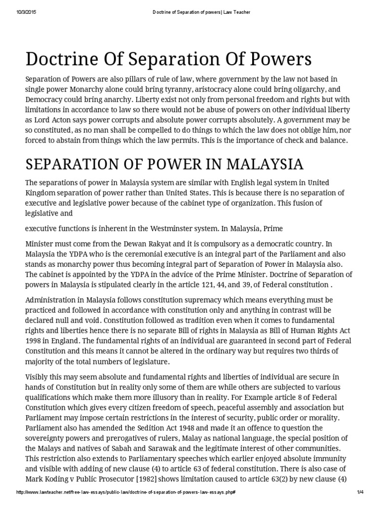 19220341 Separation Of Powers In Malaysia Uk And Usa Separation Of Powers Member Of Parliament