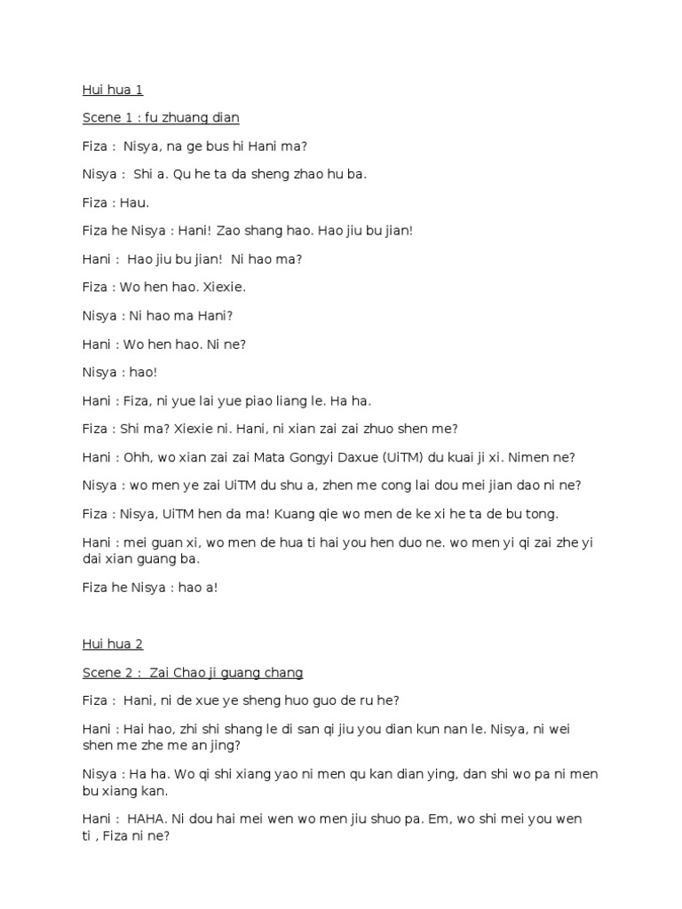 Script Roleplay Mandarin Docx Tmc451 Role Play G U00f9sh U00ec N U00e8ir U00f3ng U6545 U4e8b U5185 U5bb9 Sinopsis Scene 1 In The Shopping Centre Hidayah And Umairah Want To Go Course Hero