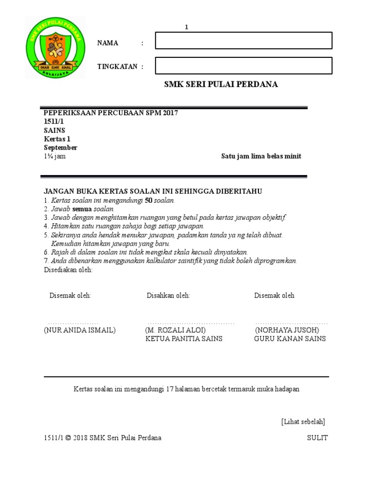 Soalan Percubaan Sains Spm 2018