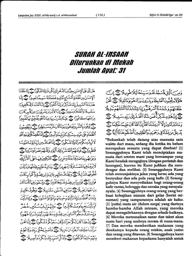 Terjemahan Tafsir Fi Zhilalil Oleh Sayyid Qutb Surah Al Insan