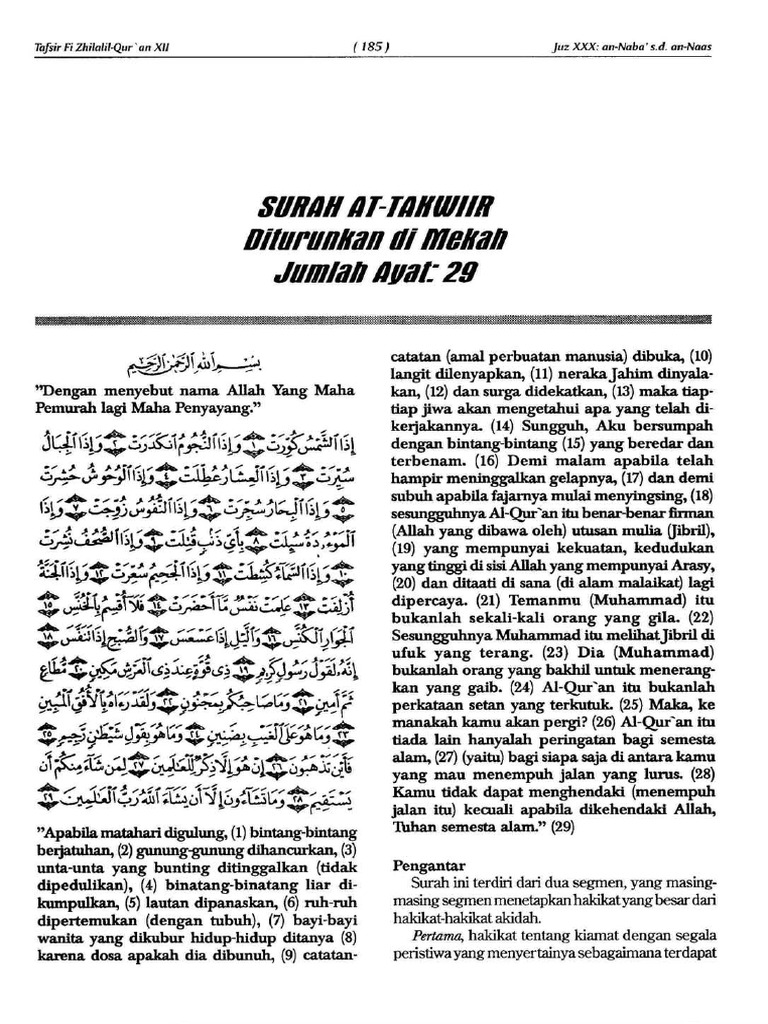 Terjemahan Tafsir Fi Zhilalil Oleh Sayyid Qutb Surah At Takwir