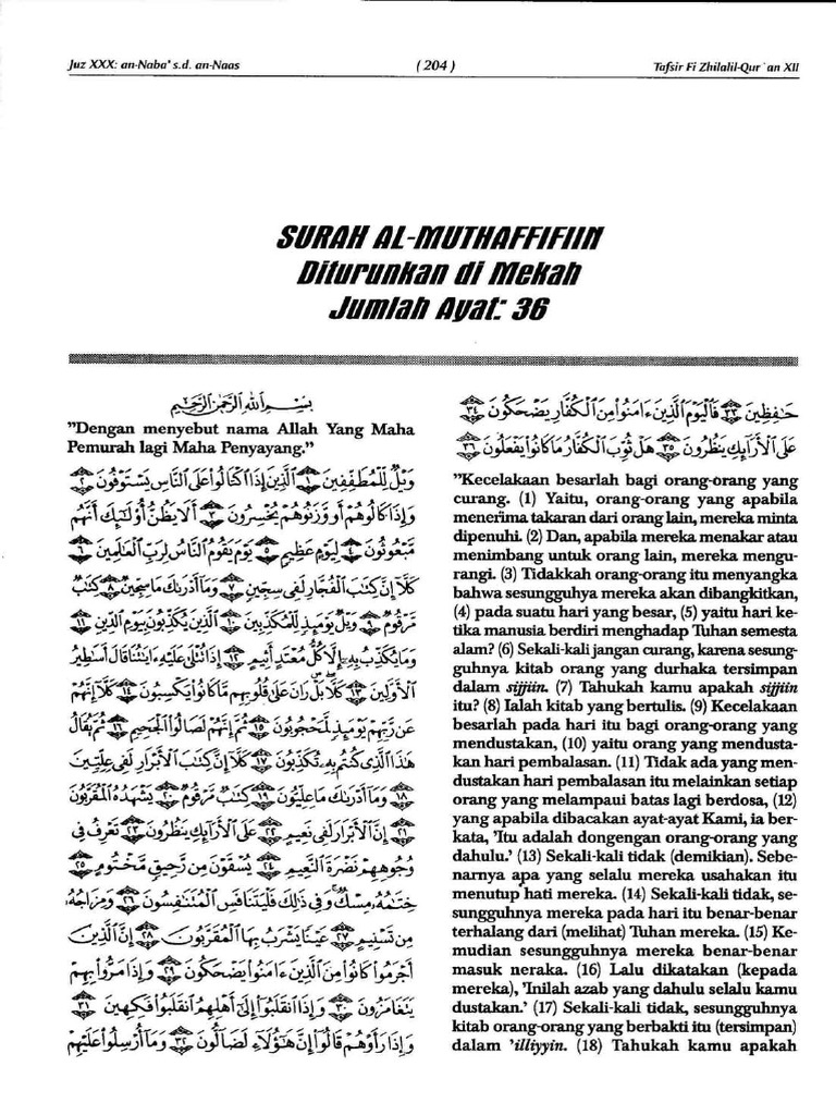 Terjemahan Tafsir Fi Zhilalil Oleh Sayyid Qutb Surah Al Muthaffifin