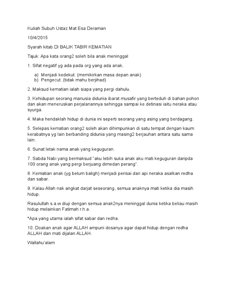 Shortnote Kuliah Ustaz Mat Esa Deraman Umed Dosa Dosa Besar 11 02 2015