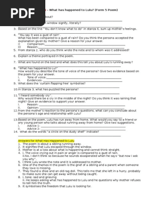 Spm English F5 What Has Happened To Lulu Soothing Studying